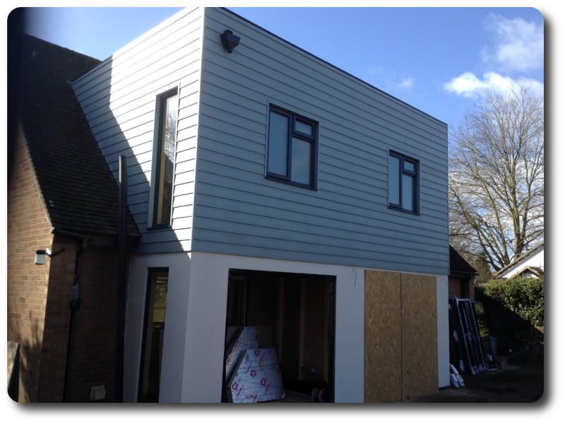 - Installation of the blue/grey Cedral Weatherboard Cladding